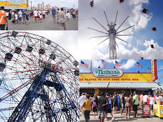 On a recent rip to New york city, I went, for the first time, to Coney Island. It is crazier and more fun than one can imagine. There are thousands of people everywhere, on the rides, on the beach, at the cafes. There are people of all kinds, scary rides, and the ever present smell of hot dogs.